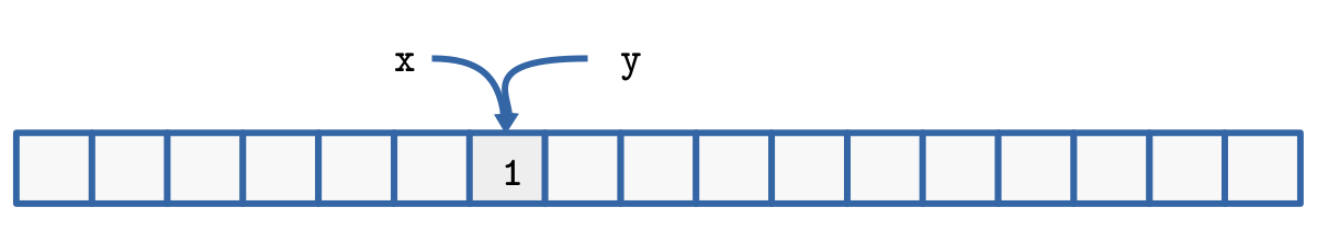 o identificador y passa a referenciar o mesmo local de memória de x.